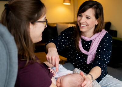 2-5 Tage verbringt man nach der Geburt in der Regel im Spital. Für alle Fragen die sich in den ersten Tagen und Wochen zu Hause stellen ist es ratsam jemanden zu haben der einen unterstützt.