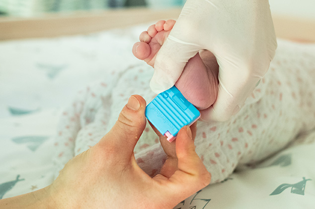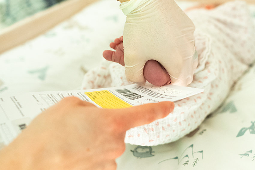 - Kontrollen beim Kind und gegebenenfalls Massnahmen (Vitalzeichen, Gesamtzustand, Gewicht, Bilirubinverlauf, Neugeborenen-Screening (Guthrie Test), Nabel (nach Bedarf Nabelklemme entfernen), Verdauung, Medikamente
